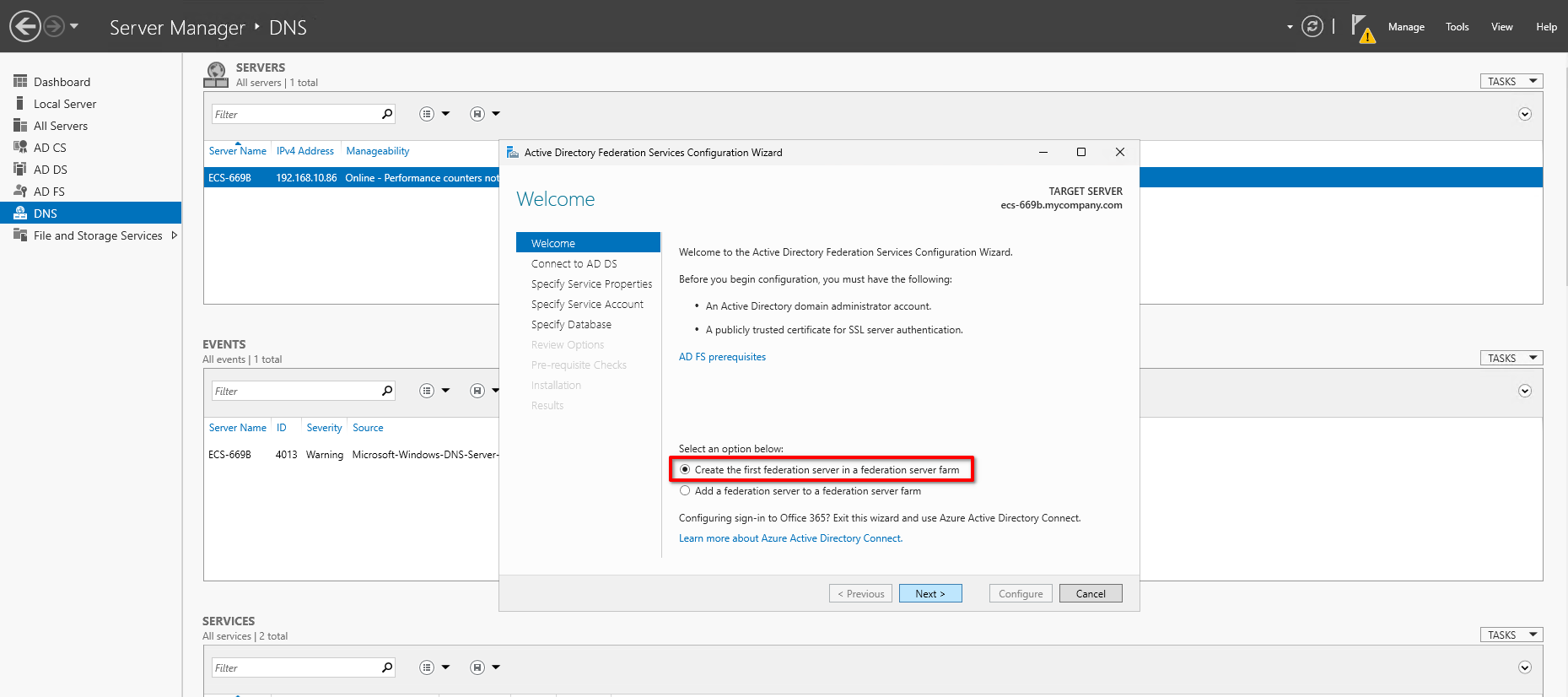 In this guide, we'll walk you through deploying Microsoft Active Directory Federation Service (AD FS) on ECS. We'll cover everything from installing Active Directory Domain Services & Active Directory Certificate Services, preparing SSL certificates, configuring DNS zones till installing and configuring an AD FS farm.